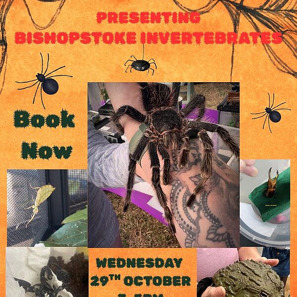 Come along during half term for a spooky encounter with Bishopstoke Invertebrates for a meet & greet.